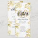 Design élégant "Programme de fête d'anniversaire" avec arrangement floral en or avec texte personnalisé.