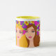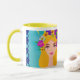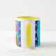 Glam Girls Café Mug Jardin brillant couleurs de bleu, vert, jaune et rose.