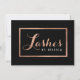 Coordonner avec le modèle de carte de visite encadrée en or/noir Rose de texte Glam Lashes d'ici 12 h 01. Une police glamour et cursive sort "Lashes" en or faux rose sur ce modèle de certificat cadeau personnalisable. Ajoutez votre nom ou votre nom d'entreprise en dessous pour un logo personnalisé. Conçu pour les salons d'extension des cils, les techniciens de foudre, les maquilleurs et plus encore. © 1201AM CREATIVE