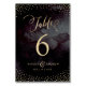 Conception calligraphie à la main et des points dorés glamor confetti sur ciel noir foncé arrière - plan d'aquarelle, effet parties scintillant en or métallique brillant, moderne, propre et élégant, parfait pour mariage vintage ou mariage d'hiver en soirée. Personnalisez vos propres cartes de numéro de table pour ajouter une touche personnelle à votre mariage ! Voir toutes les pièces correspondantes dans la collection ci-dessous.