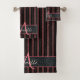 Magnifique et tendance, cet élégant ensemble de serviettes rayées de parties scintillant noire et rose peut être entièrement personnalisé avec nom et monogramme.