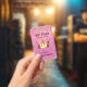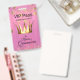 Le badge accessoire de la fête Chic Quinceañera fait dans un look de feuille rose, avec une couronne d'or et des graphiques de parties scintillant d'or, le long du haut et du bas. Le texte noir est prêt à être personnalisé pour le grand jour de votre fille.