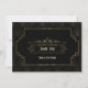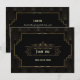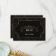 Carte de style Art Déco noir Gatsby des années 1920. Elle présente un style Art Déco, une forme et des ornements en faux or, de superbes polices vintage, sur un fond Art Déco doré. Utilisez l'outil de personnalisation pour ajouter vos informations. Pour les articles assortis, veuillez visiter ma collection Style Gatsby Art Déco doré des années 1920.