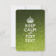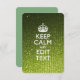 Votre personnalisation festive Keep Calm en disant sur une belle coutume élégante décor vert citron. Essayez humour ou fantaisie sur vos mots créatifs sur deux lignes de texte modifiables. N'oubliez pas d'utiliser les lettres CAPITAL pour obtenir les meilleurs résultats. Les motifs de broderie sont disponibles dans une large sélection d'options de couleurs populaires. Utilisez le lien "Demandez à ce concepteur" pour nous contacter avec vos demandes de design spécial ou pour obtenir de l'aide sur vos besoins de personnalisation.