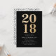 Célébrez le diplômé en style en envoyant nos invitations chic Glitz et Glamor à la soirée de remise de diplômes. Les invitations modernes à la fête de remise de diplômes présentent "2018" dans un style de parties scintillant d'or faux avec de l'espace pour vos informations de fête. L'envers des invitations a un design en points noir et blanc.