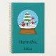 Illustration d'un globe de neige qui présente un paysage montagneux très mignon et enneigé avec un cardinal rouge portant un chapeau de santa rouge, un bonhomme de neige portant un ruban rouge et un chapeau de santa, et des pins. Ce joli dessin animé de snowdome est une idée cadeau pour les amateurs de vacances d'hiver et de Noël, les amateurs d'oiseaux et de neige, et les amateurs de waterglobe et de boules de cristal. Personnalisez ou customisez ce planificateur en ajoutant votre nom ou votre texte.