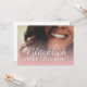 Glücklich steht Dir intestin ! Kompliment Karte mit lachendem Frauengesicht und handschriftlichen Grüßen auf der Vorderseite der Karte. Restliche Flächen stehen zur freien Verfügung.