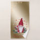 Gnome avec branches de pins, bonbons, étoiles et flocons de neige sur arrière - plan brillant.