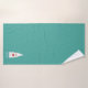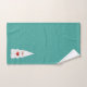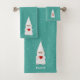 Un gnome de Noël tenant un coeur sur turquoise. Texte seulement sur une grande serviette.