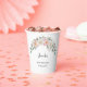 Ajoutez une touche d'élégance à votre bar à boissons avec ces magnifiques gobelets en papier jetables. Le design présente une délicate arche de roses blush et crème de style aquarelle, rehaussée de feuilles d'eucalyptus vert tendre. Personnalisez le gobelet avec le nom et la date de la célébration d'anniversaire dans une police de caractères sophistiquée. Ces gobelets personnalisables sont parfaits pour servir des boissons chaudes ou froides lors d'un 30e, 40e, 50e anniversaire ou tout autre anniversaire marquant, d'une douche de mariée ou d'un événement sophistiqué, offrant un détail charmant et cohérent pour votre cadre de fête.