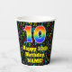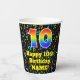Ce design coloré et joyeux sur le thème de la musique de la tasse de papier d'anniversaire comporte un grand nombre "10" avec un dégradé de l'arc-en-ciel inspiré motif, avec le message "Joyeux 10e anniversaire", et un nom modifiable. L'arrière - plan dispose d'un motif passionnant et coloré de divers notes de musique et symboles ayant une variété de tailles et de couleurs. Des tasses de papier colorées et vibrantes comme celle-ci peuvent être amusantes à utiliser lors d’une fête d’anniversaire organisée pour célébrer le dixième anniversaire de quelqu’un. [~Z0000541]
