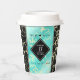 Célébrez le 11e anniversaire du mariage turquoise avec ces élégantes tasses en papier ! Un élégant lettrage noir et blanc sur un arrière - plan marbré jaune et vert bleu ajoute une touche inoubliable pour cette occasion spéciale et cette étape importante. Personnalisez avec les noms du couple et les années de mariage. Reverse affiche un design identique. Design © W.H. Sim. Voir plus sur zazzle.com/expressionsoccasions