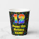 Ce design amusant et coloré de tasse de papier d'anniversaire à thème musical dispose d'un grand nombre "12" avec un motif inspiré par un gradient de spectre arc-en-ciel. Il comporte également le message "Joyeux 12e anniversaire", et un nom personnalisable. L'arrière - plan dispose d'un motif dynamique et coloré de divers notes de musique et symboles ayant une variété de couleurs et de tailles. Des tasses de papier colorées et vibrantes comme celle-ci peuvent être amusantes à avoir lors d’une fête d’anniversaire qui se tient à l’occasion du douzième anniversaire de quelqu’un. [~Z0000541]