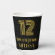 Ce look vintage et Roaring Twenties inspiré par la conception de tasse en papier sur le thème de l'anniversaire comprend un grand numéro d'apparence art déco inspiré "12", le message de bienvenue d'anniversaire "Happy 12th Birthday," et un nom modifiable. L'arrière - plan est noir de couleur. Des tasses de papier comme celle-ci peuvent être utilisées à une fête d'anniversaire pour quelqu'un qui célèbre son 12e anniversaire. [~Z0000546]