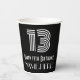 Cette apparence vintage et les Années folles inspirées par le design de tasse de papier à thème d'anniversaire comprend un grand modèle art déco inspiré numéro "13", en plus du message de voeux d'anniversaire "Happy 13th Birthday," et un nom personnalisé. Il dispose également d'une arrière - plan de couleur noire. Des tasses de papier comme celle-ci peuvent être utilisées pour célébrer le 13e anniversaire de quelqu’un. [~Z0000542]