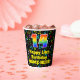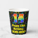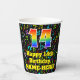 Cette conception joyeuse et amusante de tasse de papier d'anniversaire sur le thème de la musique comprend un grand nombre de "14" avec un dégradé arc-en-ciel inspiré motif, avec le message "Joyeux 14e anniversaire", et un nom modifiable. L'arrière - plan est doté d'un motif multicolore de notes de musique et de symboles variés, de tailles et de couleurs variées. Des tasses de papier colorées et vibrantes comme celle-ci peuvent être amusantes à utiliser lors d’une fête d’anniversaire organisée pour célébrer le 14e anniversaire de quelqu’un. [~Z0000541]