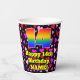 This fun and colorful birthday-themed paper cup desobjets a large number "14" having a rainbow spectrum gradient inspecred pattern. Donc, les objets du message "Happy 14th Birthday," et a custom name. Les objets de fond ont pattern of heart shapes with colors like purple, red, and pink. Upbeat, happy paper cups like this might be fun to have at a birthday celebration/party g held to celebrate somebody's 14th birthday. 2.