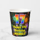 Cette conception amusante et colorée de tasse en papier à thème d'anniversaire comporte un grand nombre "17" avec un dégradé de arc-en-ciel inspiré motif, avec le message "Happy 17th Birthday,", et un nom personnalisé. L'arrière - plan présente un motif coloré, inspiré par des feux d'artifice, qui éclate en couleurs. Des tasses en papier colorées et vibrantes comme celle-ci peuvent être amusantes à avoir lors d’une fête d’anniversaire ou d’une fête qui se tient à l’occasion du dix-septième anniversaire de quelqu’un. [~Z0000539]