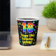 Cette conception amusante et joyeuse de tasse en papier à thème d'anniversaire comporte un grand nombre "18" avec un dégradé arc-en-ciel inspiré motif, avec le message "Joyeux 18e anniversaire", et un nom personnalisé. L'arrière - plan présente un motif coloré inspiré d'un champ d'étoiles. Des tasses en papier colorées et vibrantes comme celle-ci peuvent être amusantes à utiliser lors d’une fête d’anniversaire qui a lieu pour célébrer le dix-huitième anniversaire de quelqu’un. [~Z0000540]
