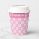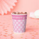 Cette tasse en papier doux et capricieux est remplie d'un adorable damier rose, avec de la place en haut pour ajouter du texte célébrant votre premier anniversaire de naissance. Cela fait partie de la collection de Cupcake 1er Anniversaire, chercher des plaques de coordination, sacs de faveur, invitations et plus encore.
