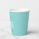 Ces tasses en papier sont conçues pour la fête du 1er anniversaire d'une fille. Le texte moderne dit "sucré ONE" accentué d'un beigne gelé turquoise et d'arrosées colorées. Personnalisez avec le nom de l'enfant.