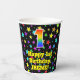 Cette conception joyeuse et joyeuse de tasse de papier d'anniversaire comporte un grand nombre "1" avec un dégradé arc-en-ciel inspiré motif, avec le message "Joyeux 1er anniversaire,", et un nom personnalisable. L'arrière - plan dispose d'un motif multicolore avec de nombreuses formes étoiles avec des couleurs et des tailles différentes. Des tasses de papier colorées et vibrantes comme celle-ci peuvent être amusantes à utiliser lors d’une fête d’anniversaire qui a lieu pour honorer le premier anniversaire de quelqu’un. [~Z0000540]