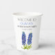Première fête d'anniversaire, bleuets bleu Texas fleurs aquarelle tasse de papier. Calligraphie simple et élégante, 1er Anniversaire Coupe de papier fête. Personnalisez-le avec vos détails.