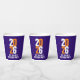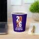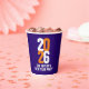 2023 New Year's Eve white and orange text design on dark blue custom event paper cups. Personalize with your own event details. Other matching items are available. Design by www.mylittleeden.com