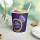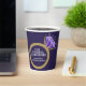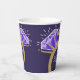 Bague violet et or sur un arrière - plan violet foncé moderne fait et mariage anniversaire fêtes tasses de papier. Personnalisez ces tasses d'anniversaire avec votre propre nom et des faits amusants sur votre couple. D'autres articles correspondants sont également disponibles. © Design original de bague graphique par Sarah Trett pour www.mylittleeden.com et www.mylittleedenweddings.com sur Zazzle.