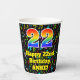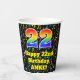 Ce design coloré et joyeux sur le thème de la musique d'anniversaire de tasse de papier dispose d'un grand nombre "22" avec un motif inspiré par un gradient de spectre arc-en-ciel. Il comporte également le message "Joyeux 22e anniversaire", et un nom personnalisé. L'arrière - plan dispose d'un motif dynamique et coloré de divers notes de musique et symboles ayant une variété de couleurs et de tailles. Des tasses de papier colorées et vibrantes comme celle-ci peuvent être amusantes à avoir lors d’une fête d’anniversaire ou d’une fête organisée pour célébrer le vingt-deuxième anniversaire de quelqu’un. [~Z0000541]