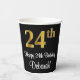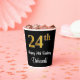 Ce design élégant, élégant et luxueux de tasse en papier sur le thème de l'anniversaire comporte un grand numéro ordinal "24ème" avec une imitation/faux motif dégradé d'inspiration or, avec le message de voeux d'anniversaire "Happy 24ème anniversaire", et un nom personnalisé dans une police de style script. Il dispose également d'une arrière - plan de couleur noire. Des tasses de papier à thème d’anniversaire sophistiquées comme celle-ci peuvent être utilisées lors d’une fête d’anniversaire pour célébrer le 24e anniversaire de quelqu’un. [~Z0000538]