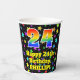 Cette conception joyeuse et colorée de tasse en papier à thème d'anniversaire comporte un grand nombre "24" avec un dégradé de spectre arc-en-ciel inspiré motif, avec le message "Joyeux 24e anniversaire", et un nom personnalisé. L'arrière - plan dispose d'un motif passionnant et coloré ayant de nombreuses formes étoiles avec différentes tailles et couleurs. Des tasses de papier colorées et vibrantes comme celle-ci peuvent être amusantes à avoir lors d’une fête d’anniversaire ou d’une fête qui a lieu pour honorer le 24e anniversaire de quelqu’un. [~Z0000540]