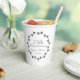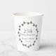Célébrez un 25e anniversaire de Mariage d'argent avec ces tasses de papier blanc qui présentent un motif de couronne de lierre gris argenté avec les noms du couple d'anniversaire et la date mariage imprimé en écriture stylisée couleur gris argenté. Modifiez et remplacez les noms et la date du mariage selon vos besoins.