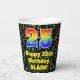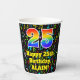 Ce motif musical gai et coloré à thème de la conception de tasse de papier d'anniversaire comporte un grand nombre "25" avec un dégradé de arc-en-ciel inspiré motif, avec le message "Joyeux 25e anniversaire,", et un nom personnalisé. L'arrière - plan dispose d'un motif de notes de musique colorées et de symboles. Des tasses de papier colorées et vibrantes comme celle-ci peuvent être amusantes à avoir lors d’une fête d’anniversaire qui se tient à l’occasion du 25e anniversaire de quelqu’un. [~Z0000541]