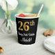 Ce design élégant, élégant et sophistiqué de tasse en papier à thème d'anniversaire comprend un grand numéro ordinal "26ème" avec une imitation/faux motif dégradé d'inspiration or, en plus du message de voeux d'anniversaire "Joyeux 26ème anniversaire", et un nom modifiable dans une police de style script. Il dispose également d'une arrière - plan de couleur noire. De luxueuses tasses en papier comme celle-ci peuvent être amusantes à utiliser lors d'une fête organisée pour quelqu'un qui célèbre son vingt-sixième anniversaire. [~Z0000538]