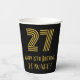 Ce style vintage et le style années 1920-1930 inspiré par le thème anniversaire de conception de tasse en papier comprend un grand look Art déco inspiré numéro "27", en plus du message de bienvenue d'anniversaire "Happy 27th Birthday," et un nom personnalisé. Il dispose également d'une arrière - plan de couleur noire. Des tasses en papier inspirées du style des années 1920-1930 comme celle-ci pourraient être amusantes à utiliser lors d’une fête d’anniversaire en l’honneur du 27e anniversaire de quelqu’un. [~Z0000546]