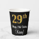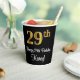 Ce design élégant, luxueux et sophistiqué de tasse en papier à thème d'anniversaire comporte un grand numéro ordinal "29ème" ayant une apparence fausse/imitation or, en plus du message de voeux d'anniversaire "Happy 29ème anniversaire", et un nom personnalisé dans une police de style script. Il dispose également d'une arrière - plan de couleur noire. Des tasses de papier comme celle-ci peuvent être utilisées lors d’une fête organisée pour célébrer le vingt-neuvième anniversaire de quelqu’un. [~Z0000538]