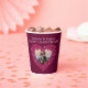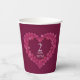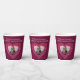 Personnalisez ces gobelets de papier mariage d'anniversaire rouge foncé avec vos propres couples d'anniversaire de 2e mariage noms, photo, date et années de mariage. D'autres articles correspondants sont disponibles. Coeur de grenat rouge profond effet graphique art et design par Sarah Trett pour www.mylittleeden.com et www.mylittleedenweddings.com