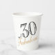Élégantes 30 et fabuleuses tasses de papier d'anniversaire à script blanc. Design élégant avec script tendance pour une femme.