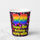 Ce design coloré et joyeux de tasse de papier d'anniversaire comporte un grand nombre "30" avec un motif inspiré par un gradient de spectre arc-en-ciel. Il comporte également le message "Joyeux 30e anniversaire", et un nom personnalisé. L'arrière - plan présente un motif aux formes de coeur rose, violet et rouge. Des tasses de papier amoureuses et amusantes comme celle-ci peuvent être amusantes à utiliser lors d’une fête d’anniversaire ou d’une célébration pour célébrer le 30e anniversaire de quelqu’un. [~Z0000548]