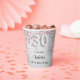 Pour une fête de 30e anniversaire glamour et girly. Un arrière - plan faux argenté. Sur le devant et le dos : Personnalisez et ajoutez un nom et une date. Décoré de confettis rose et faux argent. Le numéro 30 est écrit avec une police de style ballon.