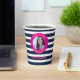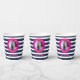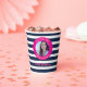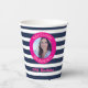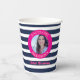 Faites un peu de plaisir avec ces gobelets d'anniversaire personnalisés, conçus pour une fête ludique sur le thème nautique. Les rayures bleu marine et blanc accrocheuses, associées à un cercle rose vif, créent un look festif, parfait pour toute fête. Ajoutez facilement une photo spéciale de la fille d'anniversaire et de son nom, transformant ces simples tasses en belles faveurs de fête. Ces tasses robustes et de qualité supérieure conserveront les boissons cool et compléteront tout décor de fête nautique.