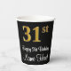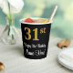 Cette conception élégante, luxueuse et élégante de tasse de papier d'anniversaire comporte un grand numéro ordinal "31st" ayant une apparence imitation/fausse or, ainsi que le message de voeux d'anniversaire "Happy 31st Birthday", et un nom personnalisé dans une police de style script. L'arrière - plan est noir de couleur. De luxueuses tasses à thème d’anniversaire comme celle-ci peuvent être utilisées lors d’une fête d’anniversaire pour célébrer le trente et unième anniversaire de quelqu’un. [~Z0000538]
