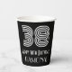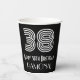 Ce look vintage et Roaring Twenties inspiré par la conception de tasse en papier sur le thème de l'anniversaire, comprend un grand numéro d'apparence art déco inspiré "38", avec le message d'anniversaire "Happy 38th Birthday," et un nom personnalisable. L'arrière - plan est noir de couleur. Les années folles ont inspiré des tasses de papier à thème d’anniversaire comme celle-ci pourraient être utilisées à une fête pour célébrer le 38e anniversaire de quelqu’un. [~Z0000542]