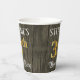 This ornate and opulent birthday paper cup design features an editable name and the message “38th Birthday Party”. The large number “38th” has a faux/imitation gold-inspired coloring pattern, and the words “Birthday Party” are in elegant script-style text. The background features a faux/imitation woodgrain-inspired look. Fancy, luxurious paper cups like this might be used at a birthday celebration/party being held to celebrate somebody’s 38th birthday. [~Z0000568]