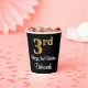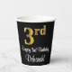 Ce design luxueux, élégant et sophistiqué de tasse de papier d'anniversaire comporte un grand numéro ordinal "3ème" ayant une apparence fausse/imitation or, ainsi que le message de voeux d'anniversaire "Happy 3ème anniversaire", et un nom personnalisé dans une police de style script. Il dispose également d'une arrière - plan de couleur noire. Des tasses de papier sur le thème de l'anniversaire comme celle-ci peuvent être amusantes à utiliser lors d'une fête d'anniversaire organisée pour quelqu'un qui célèbre son 3e anniversaire. [~Z0000538]
