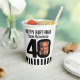 Personnalisez ces tasses monochrome de fête de 40e anniversaire avec votre propre nom d'anniversaire et deux photos dans le 0 de 40. Texte amusant et design photo personnalisé. Idéal pour utiliser à une fête de quarantième anniversaire pour montrer une photo de votre garçon ou fille d'anniversaire maintenant et une de leur passé. D'autres articles de fête de quarantième anniversaire correspondants sont disponibles. © Art graphique original et design par Sarah Trett pour www.mylittleeden.com