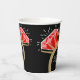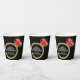 Bague rouge et or sur un arrière - plan noir moderne de faits et mariage anniversaire fêtes tasses de papier. Personnalisez ces tasses d'anniversaire avec votre propre nom et des faits amusants sur votre couple. D'autres articles correspondants sont également disponibles. © Design original de bague graphique par Sarah Trett pour www.mylittleeden.com et www.mylittleedenweddings.com sur Zazzle.