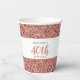 Décorez pour sa fête en style avec ces coupes en papier personnalisées de 40e anniversaire Rose Parties scintillant d'or.  Ce design moderne et élégant a un arrière - plan rose en or faux parties scintillant tendance autour des tasses en papier.  Le texte a un nom suivi de "40ème anniversaire" en gris et assorti script de calligraphie rose en lettrage sur bande blanche au centre des deux côtés.  Cliquez sur l'option Personnaliser le modèle et entrez le nom.