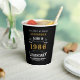 For those born in 1986 and celebrating their 40th birthday we have the ideal birthday paper cups. The black background with a white and gold vintage typography design design is simple and yet elegant with a retro feel. Easily customize the text of this birthday gift using the template provided. More gifts and party supplies available with the "Legendary" design in the store.